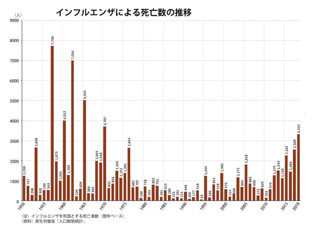じつはインフルエンザでの死亡者数は増えていたんだ。ちょっと驚いた。